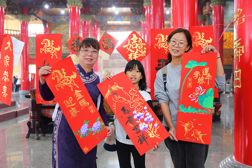晨光熹微,廟埕已大排長龍,交頭接耳討論等等要寫在紅色春聯上的字句。廟裡,今日揮毫的五十位書法老師,在高燕雪的帶領下,雙手...